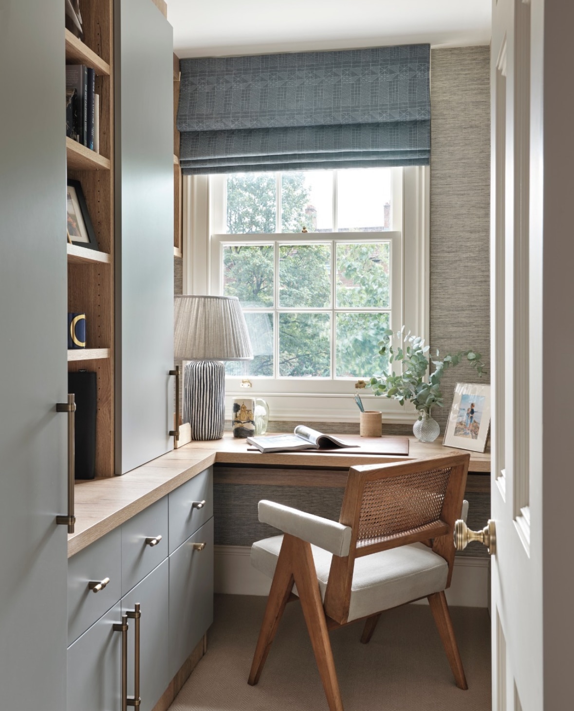 a built-in or furniture-style desk scaled to the space